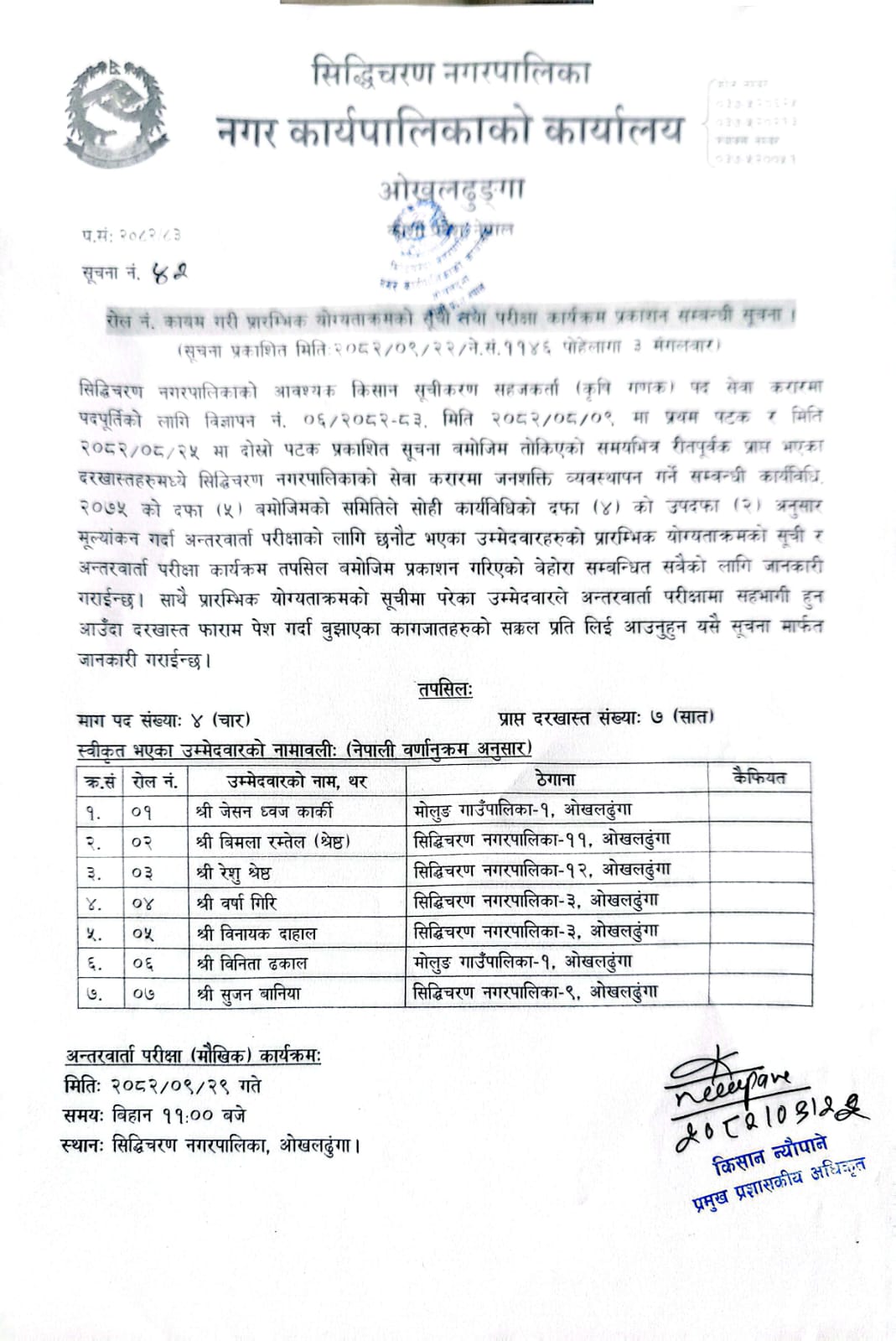 किसान सूचीकरण सहजकर्ता(कृषि गणक) पदको अन्तिम नतिजा प्रकाशन सम्बन्धी सूचना