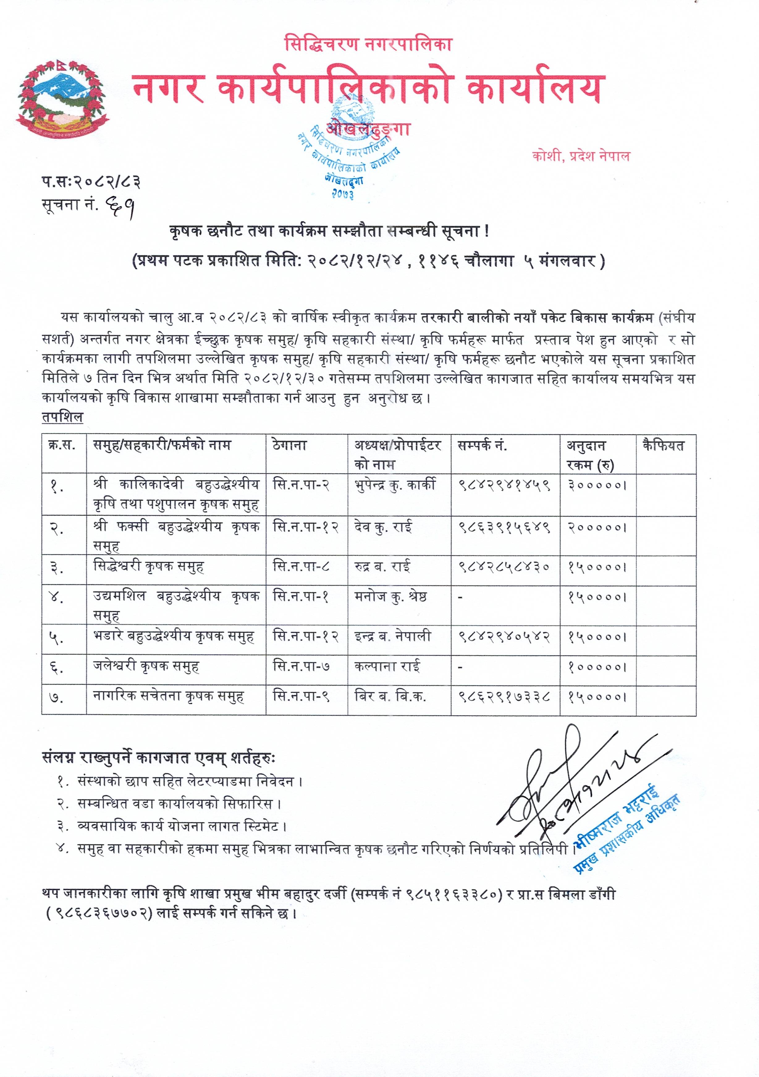कृषक छनौट तथा कार्यक्रम सम्झौता सम्बन्धी सूचना