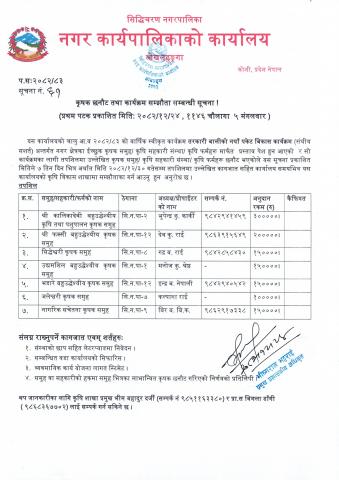 कृषक छनौट तथा कार्यक्रम सम्झौता सम्बन्धी सूचना