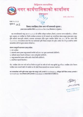 प्लाष्टिक टनेल माग गर्ने सम्बन्धी सूचना