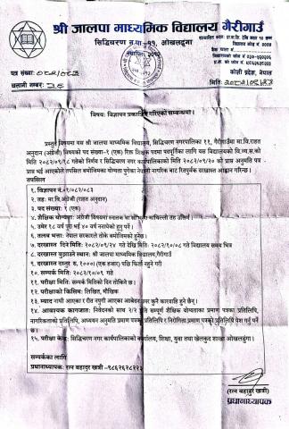 विज्ञापन प्रकाशित गरिएको सम्बन्धमा