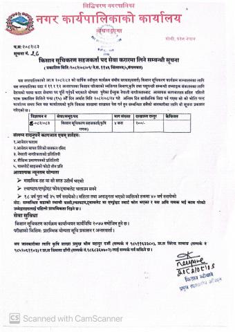 किसान सूचीकरण सहजकर्ता पद सेवा करारमा लिने सम्बन्धी सूचना, (प्रथम पटक सूचना प्रकाशित मिति : २०८१/१०/२५)