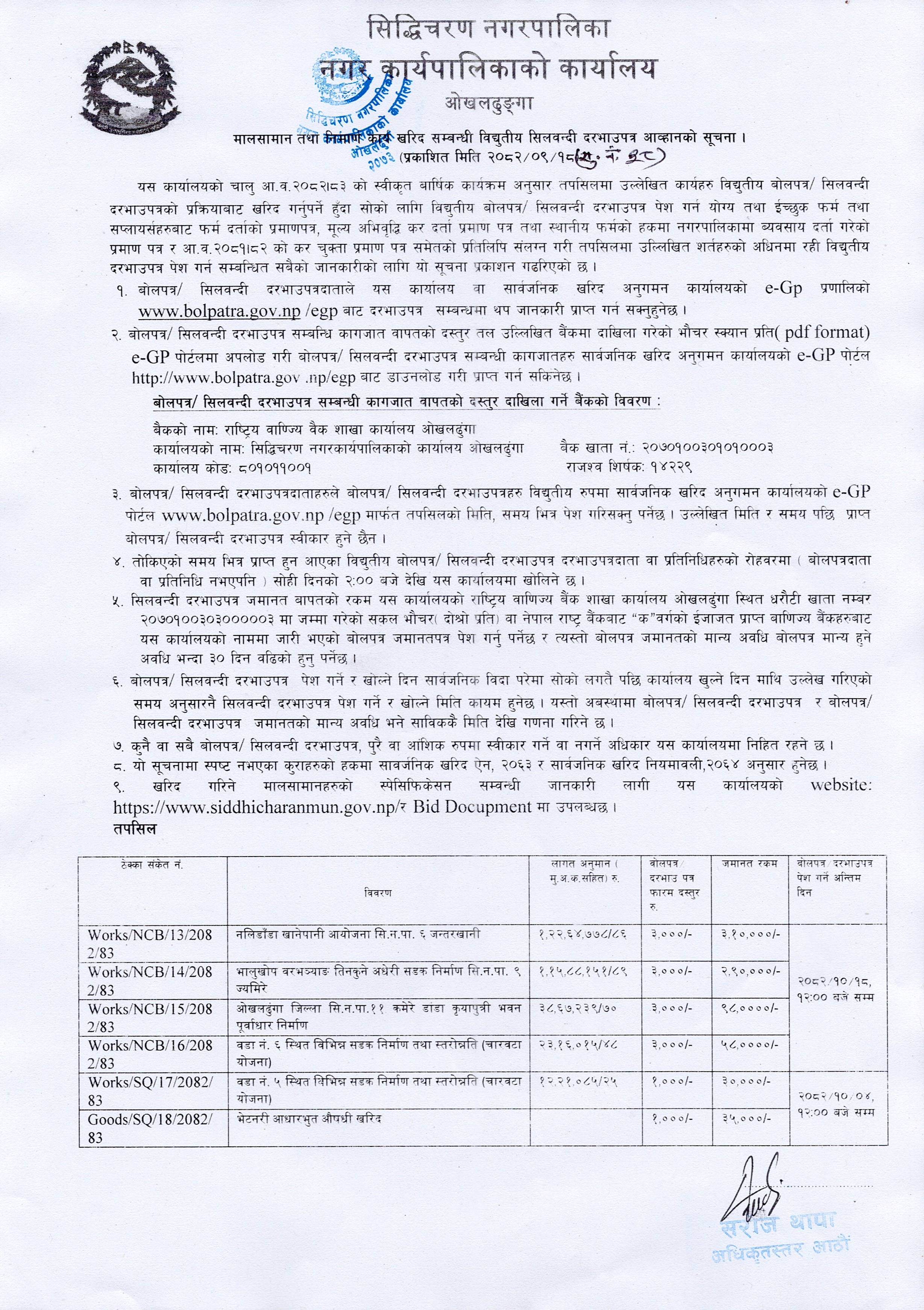 मालसामान तथा निर्माण कार्य खरिद सम्बन्धी विद्युतीय सिलवन्दी दरभाउपत्र आव्हानको सूचना
