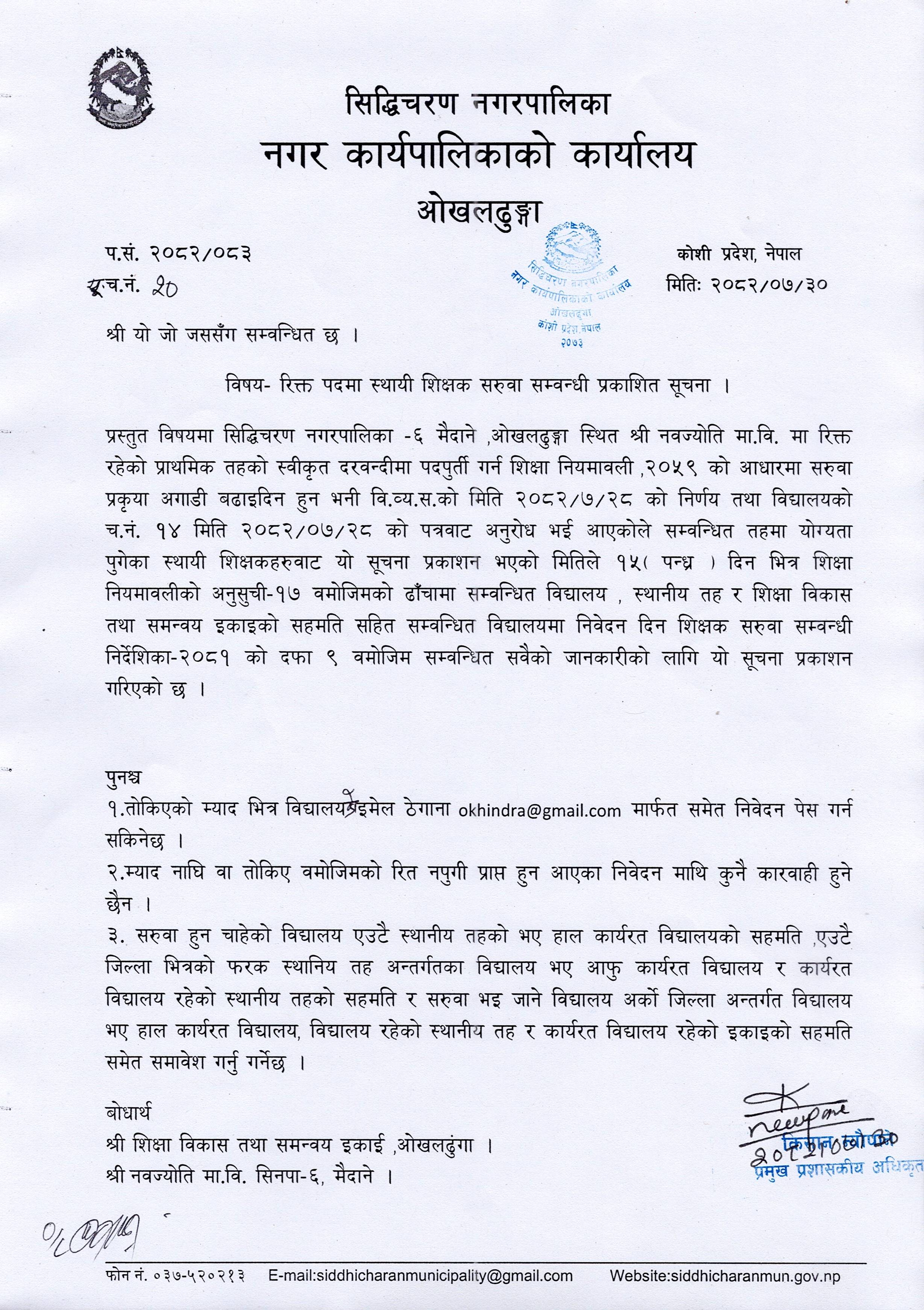 » रिक्त पदमा स्थायी शिक्षक सरुवा सम्बन्धी प्रकाशित सूचना