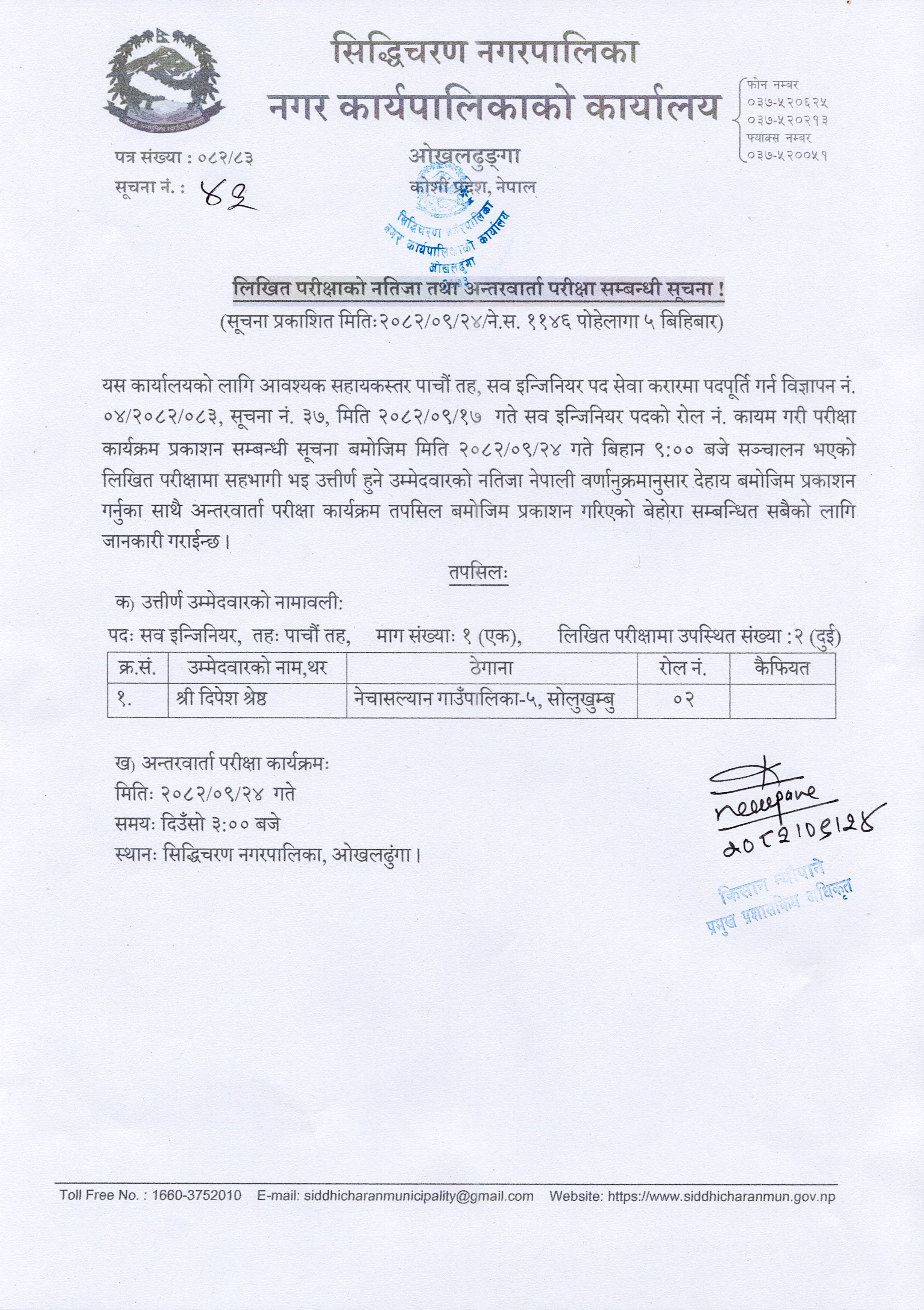 लिखित परीक्षाको नतिजा तथा अन्तरवार्ता परीक्षा सम्बन्धी सूचना