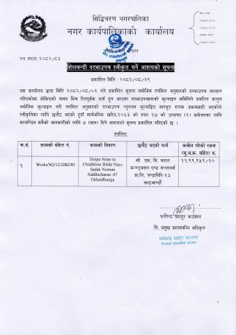 शिलवन्दी दरभाउपत्र स्वीकृत गर्ने आशयको सूचना Works/SQ/12/2082/83