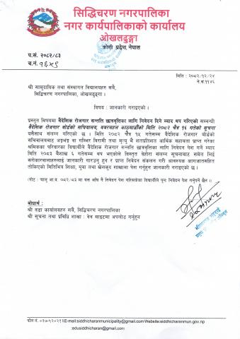 दर रेट पेश गर्ने सम्बन्धी सूचना