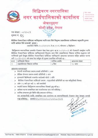 बैदेशिक रोजगारीबाट फर्किएका व्यक्तिहरुका लागि सात दिने निशुल्क उद्यमशिलता तालिममा सहभागी हुनका लागिआवेदन दिने सम्बन्धी सूचना