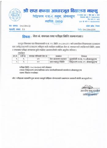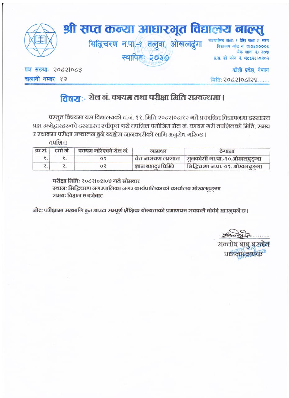 रोल नं. कायम तथा परीक्षा मिति सम्बन्धमा